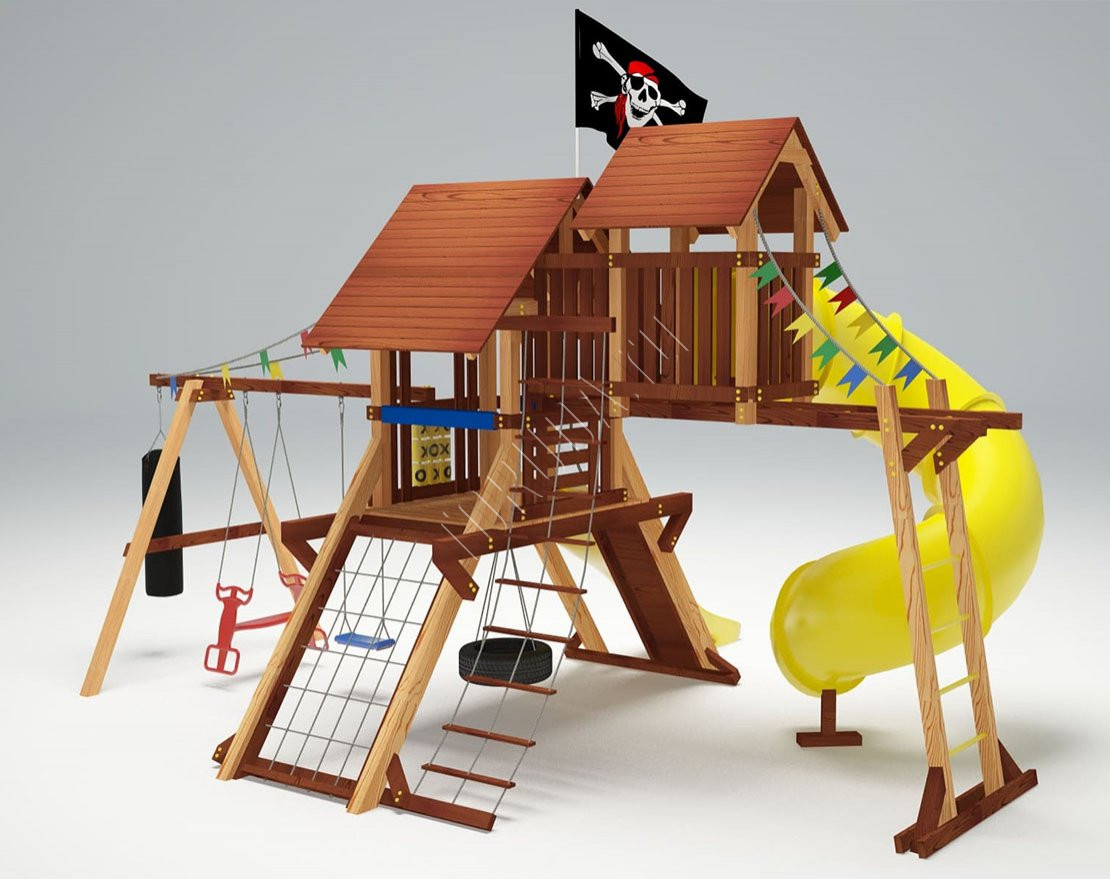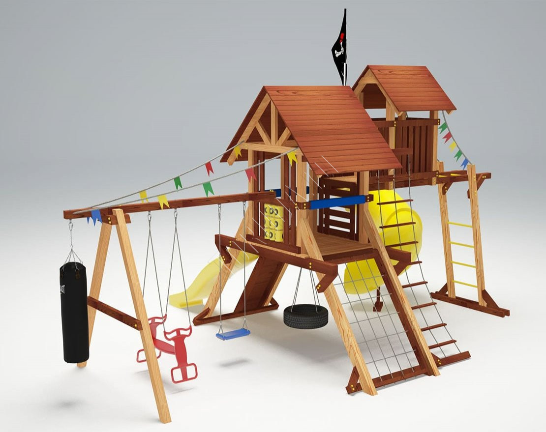 Площадка Галиот 13 обладает довольно широким функционалом (который по желанию можно легко расширить). А на качелях могут кататься даже родители! Детская площадка предназначена для дачи, коттеджа.