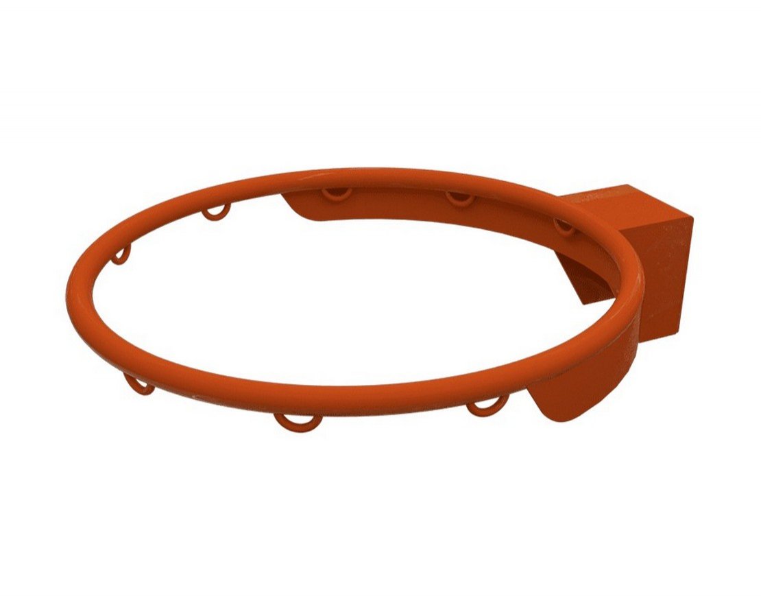 Баскетбольное кольцо производится из металлического прутка диаметром 16 мм, окрашенного полимерно-порошковой краской, устойчивой к воздействию неблагоприятных погодных условий и ультрафиолета. Кольцо имеет усиленные ребра жесткости в виде приваренного полукольца из металлической полосы.